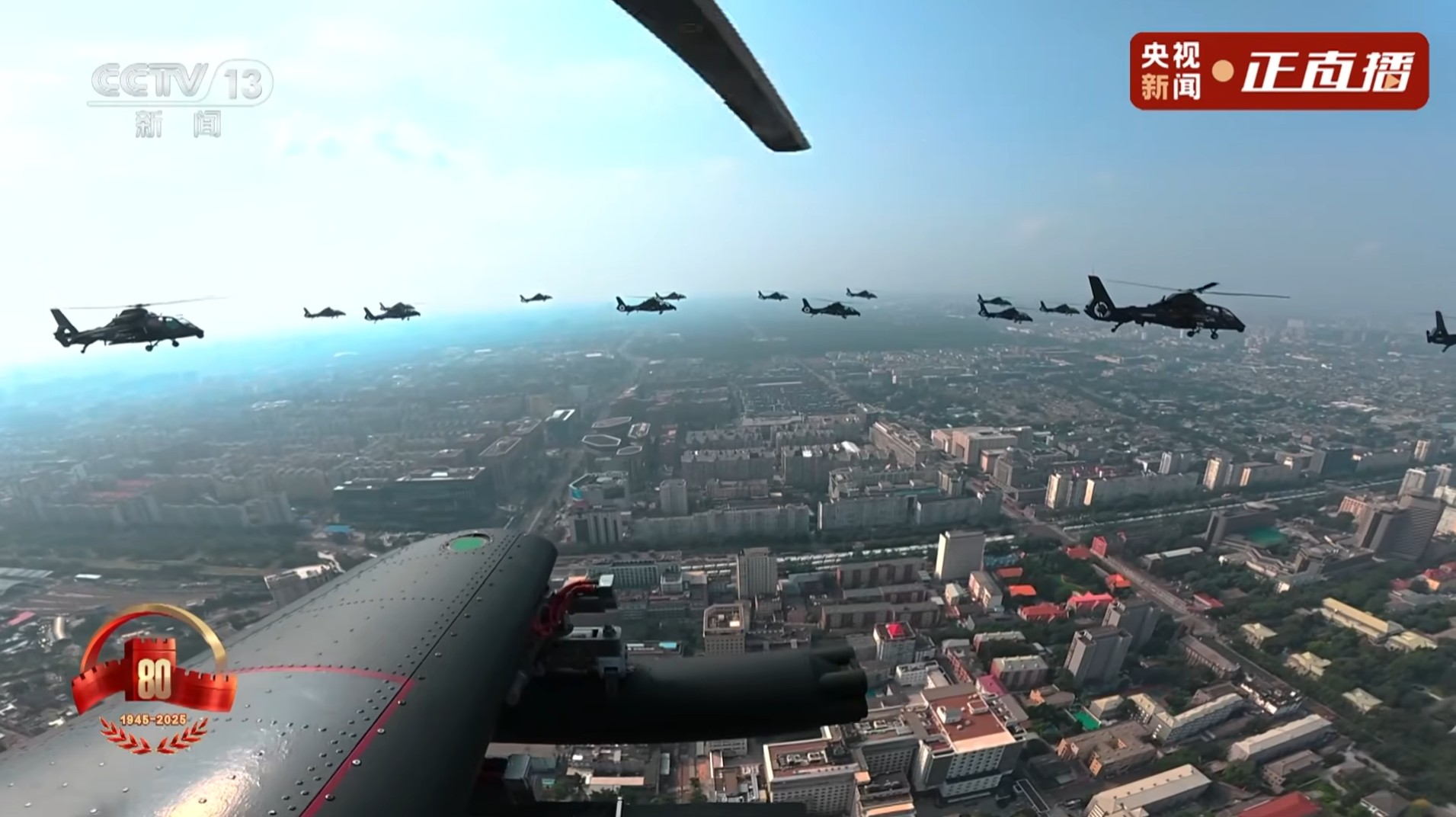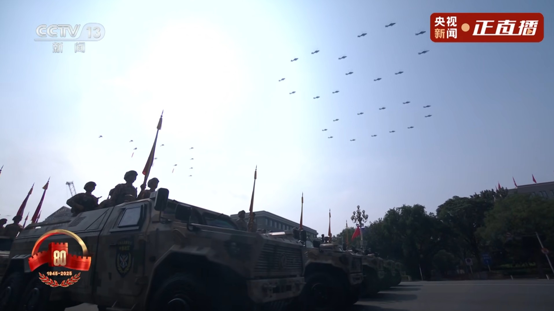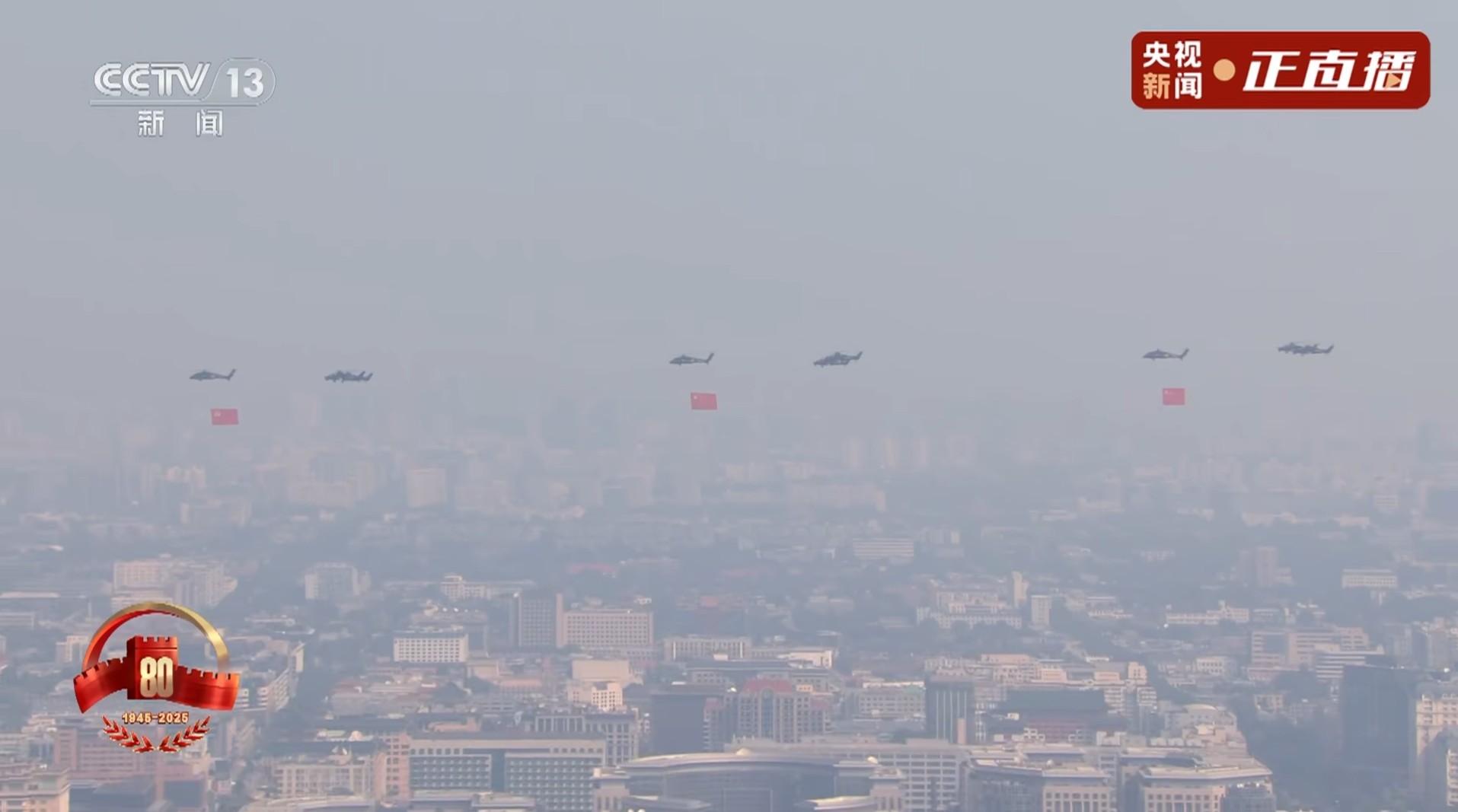 空中护旗队飞过天安门上空