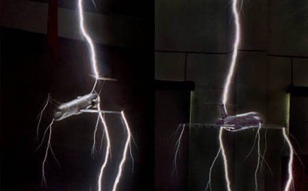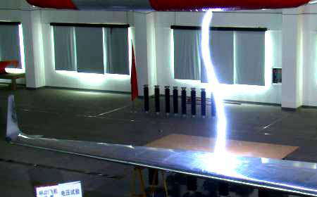 ③直升机旋翼雷电试验 | ④直升机结构件雷电试验 |